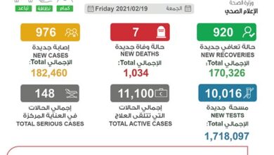 شفاء 920 حالة ليبلغ إجمالي المتعافين 170326