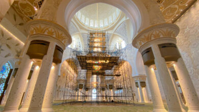 ثريات جامع الشيخ زايد الكبير.. تحفة تجمع أصالة التصميم وحداثة التقنيات
