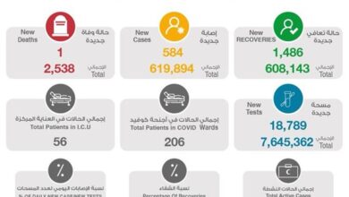 أعلنت وزارة الصحة اليوم عن تأكيد إصابة 584 حالة جديدة، وتسجيل 1,486 حالة شفاء، و 1 حالة وفاة جديدة بـفيروس…