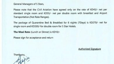 قام اتحاد الفنادق بإرسال كتب لجميع شركات السياحة والسفر لأسعار الحجر المؤسسي لدى الفنادق من فئة 3 و4 و5 نجوم،…