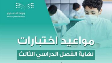 اعتمدت وزارة التعليم تنظيم أعمال اختبارات نهاية الفصل الدراسي الثالث 1443 لجميع مراحل التعليم العام الحكومي والأهلي والعالمي، ومعاهد وبرامج…