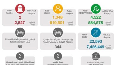 أعلنت وزارة الصحة اليوم الجمعة تسجيل 1348 إصابة جديدة بفيروس كورونا المستجد (كوفيد 19) في ال24 ساعة الماضية ليرتفع بذلك إجمالي…