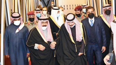 صـاحب السمو الأميـر الشيـخ نواف الأحمـد يحيي مستقبليـه في المطـــار بحضـور سمو ولي العهد الشيخ مشعل الأحمد سمو الشيخ ناصر…