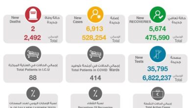شفاء 5674 حالة وإجمالي المتعافين 475590