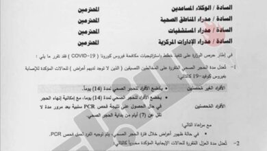 العزل للحالات الإيجابية 10 أيام لغير المحصنين و7 للمحصنين
